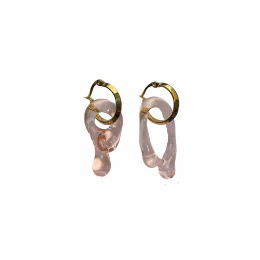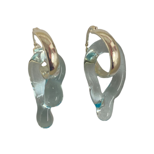 Clear Light Blue Murano Glass Drip Charm Hoops